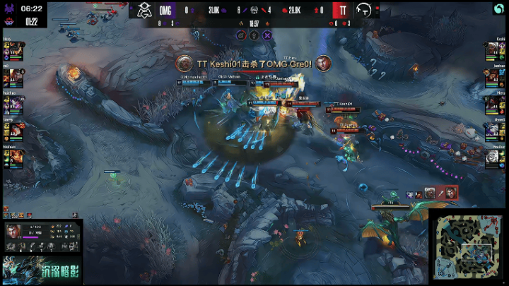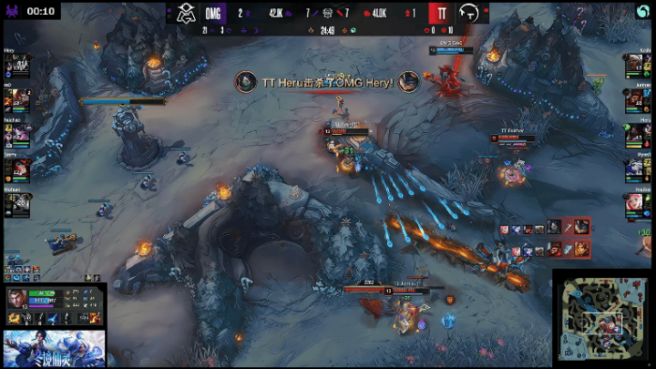 35分钟,TT上野在下路开日女阵亡,随后OMG顺利一波